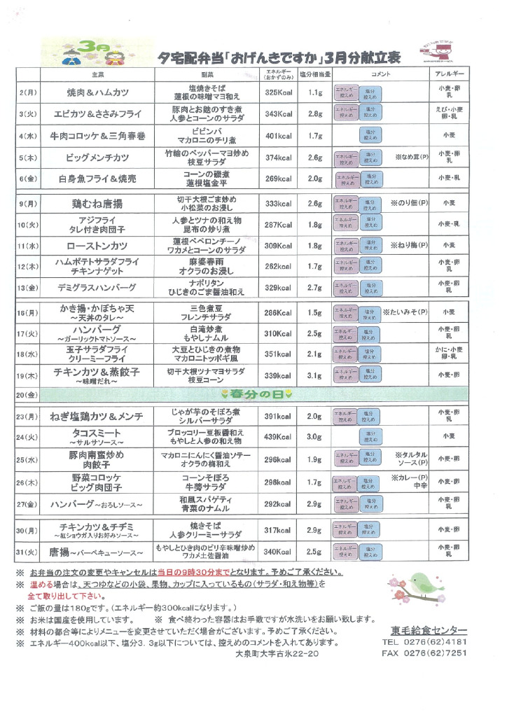 3月の献立【おげんきですか】