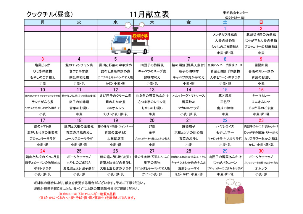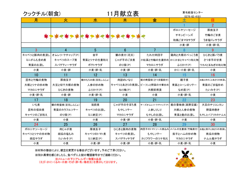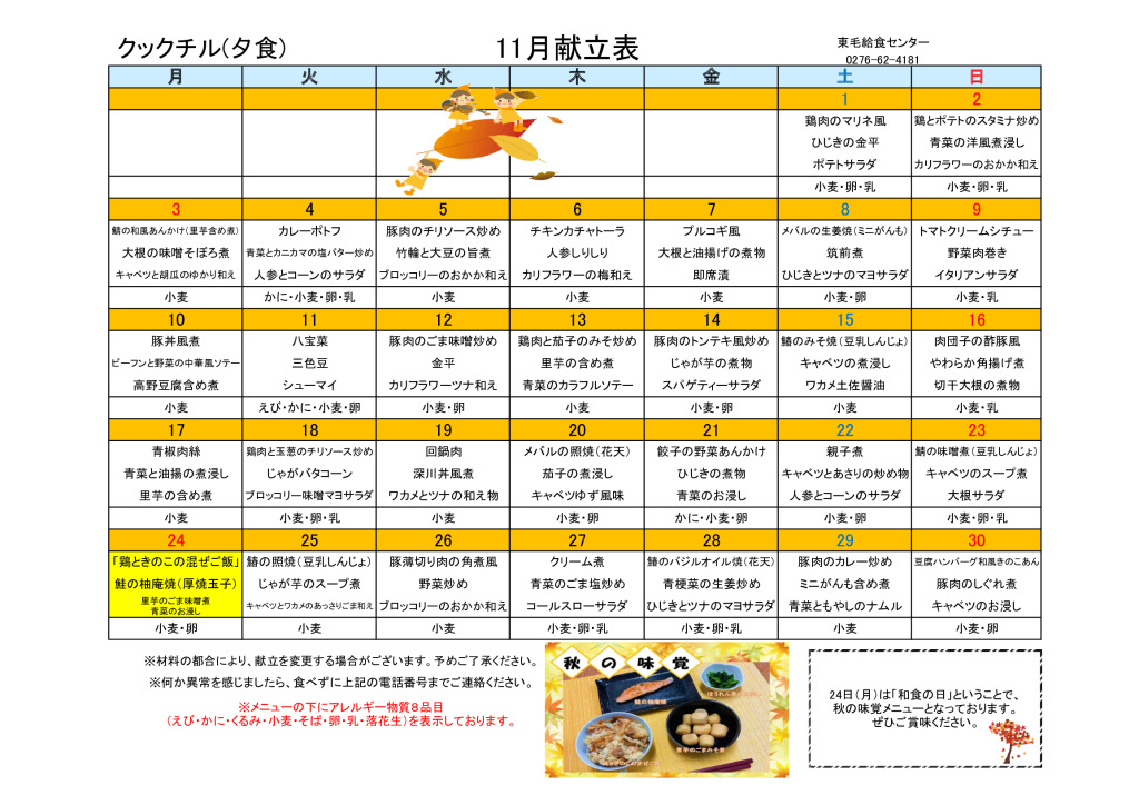 11月の献立【スマイルクック】