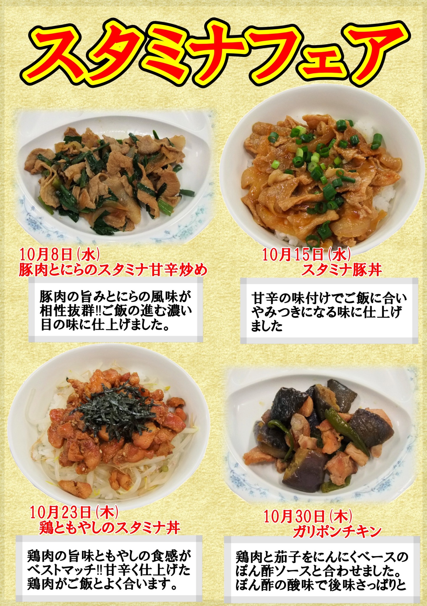 【群馬の社食とお弁当は東毛給食】10月の社食は 「スタミナフェア」開催!