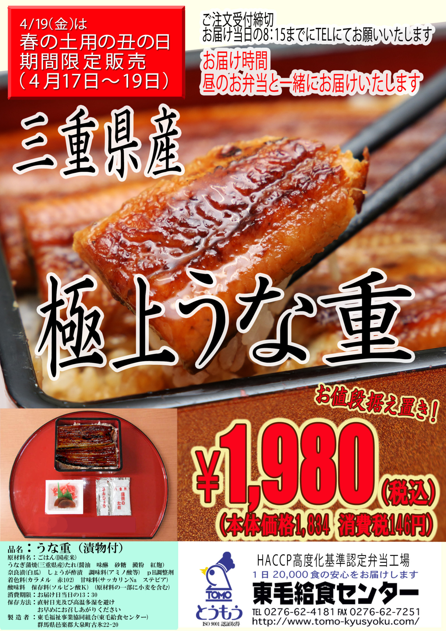4月19日(金)は「春の丑の日」 三重県産極上うな重!!